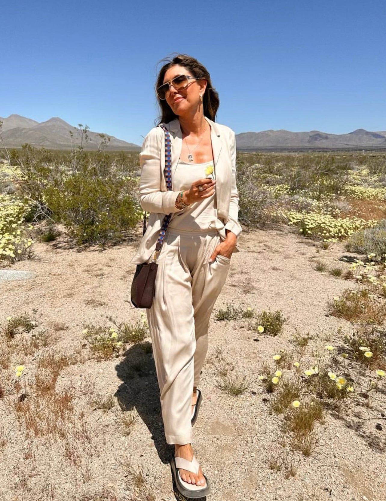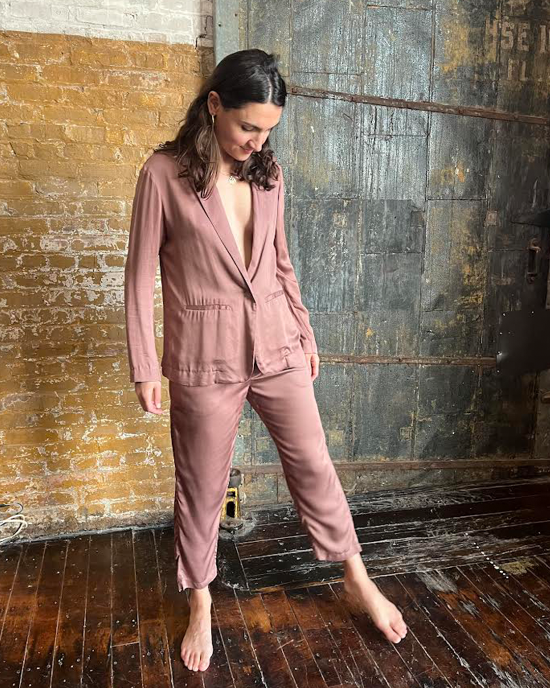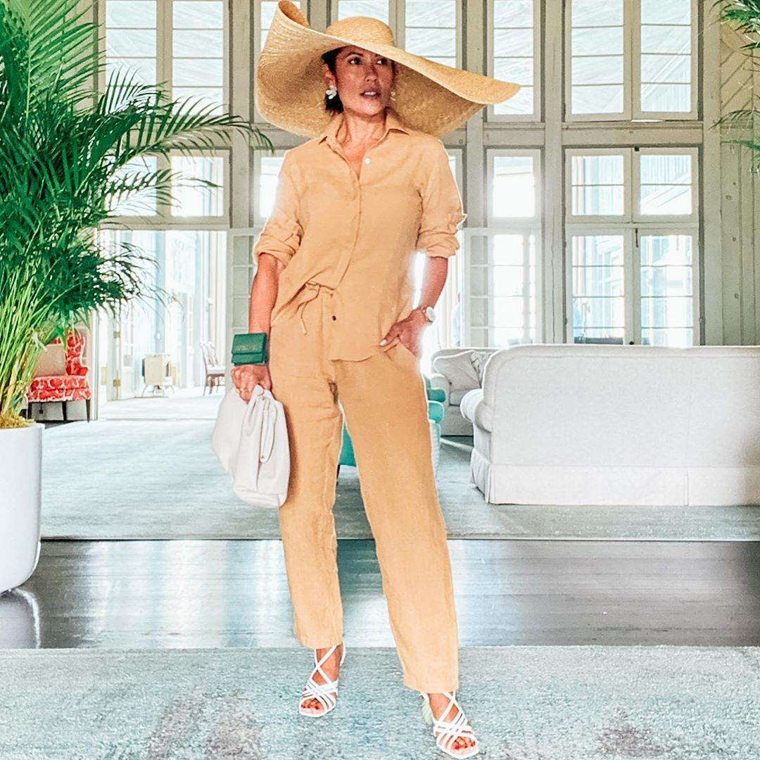 @amyrosoffdavis in the Cropped Palazzo Pants and the Lotus Camisole