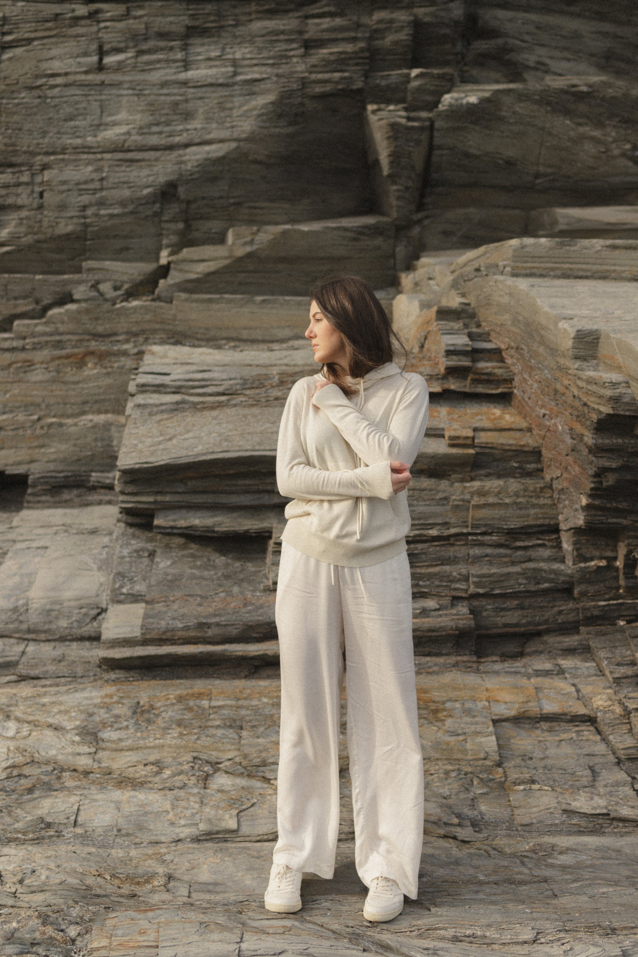 @ajla.sun in the Cotton/Cashmere Hoodie and the Wide Leg Palazzo Pants