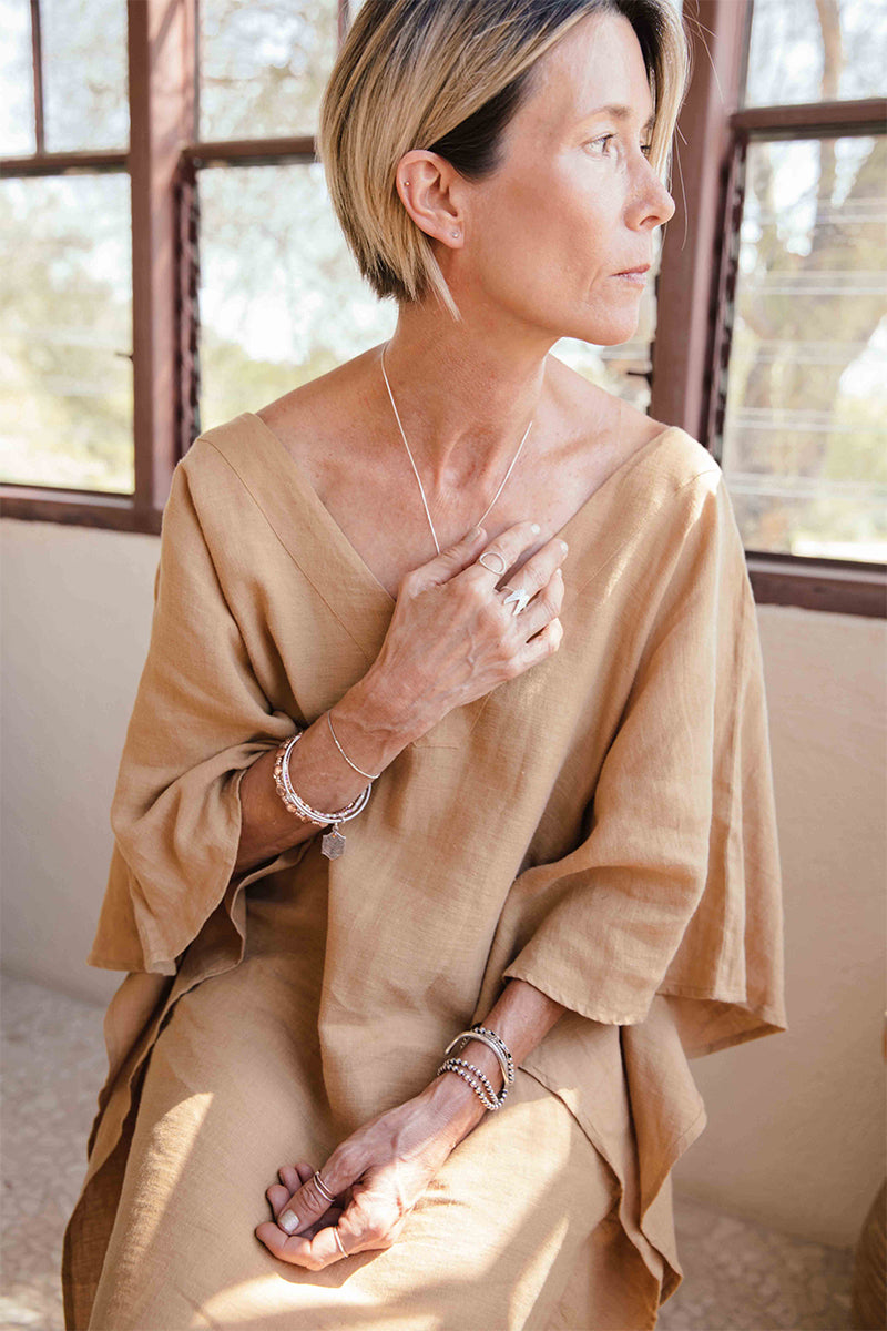 @celsious_social in the Linen Cocoon Dress, the Linen Cocoon Tunic and the Linen Cropped Peg Leg Pant
