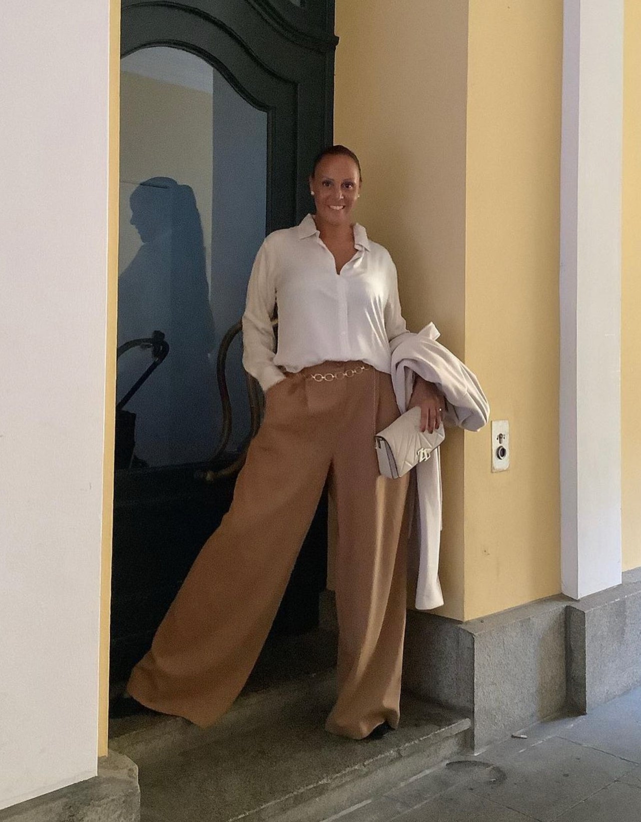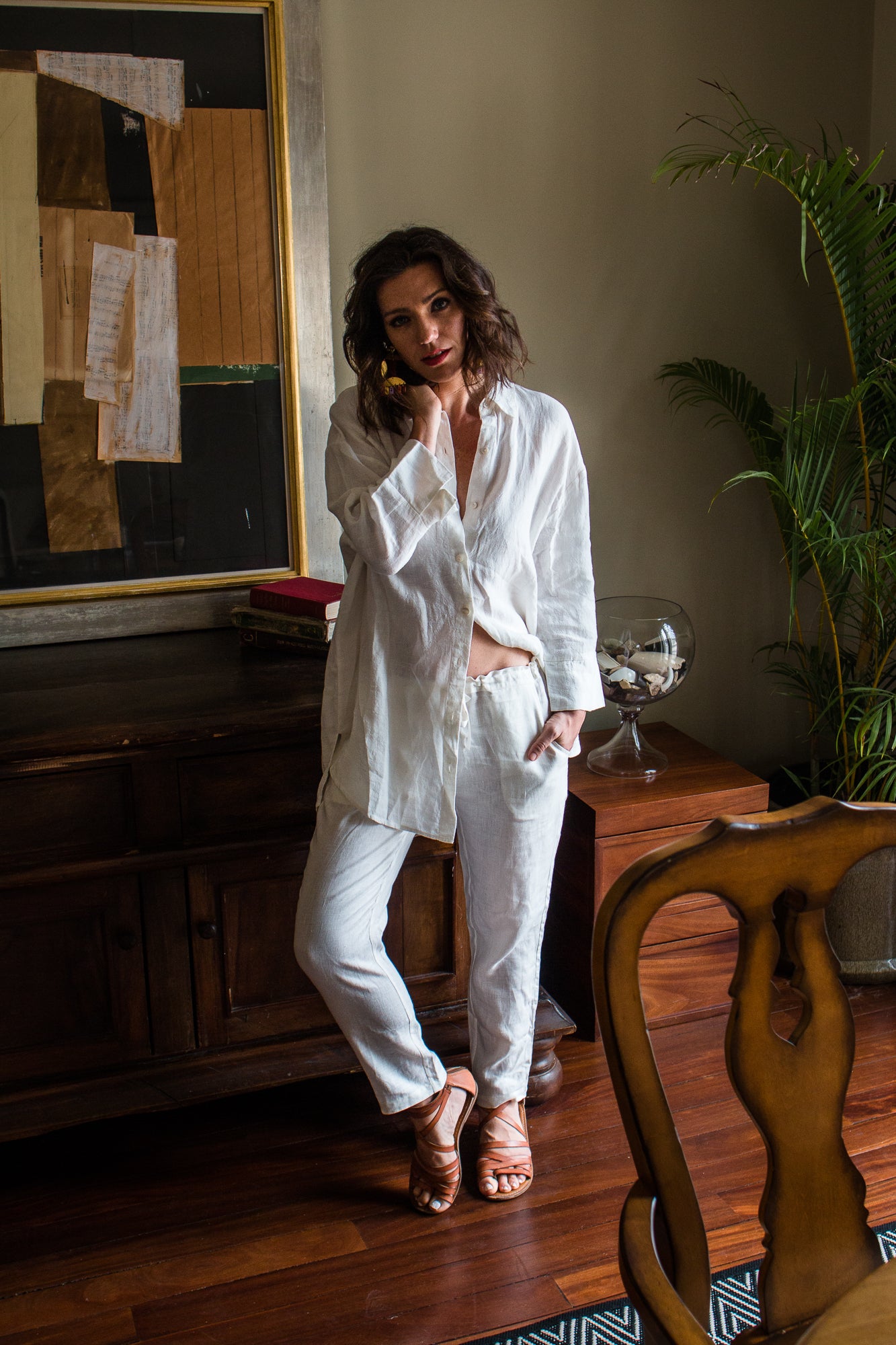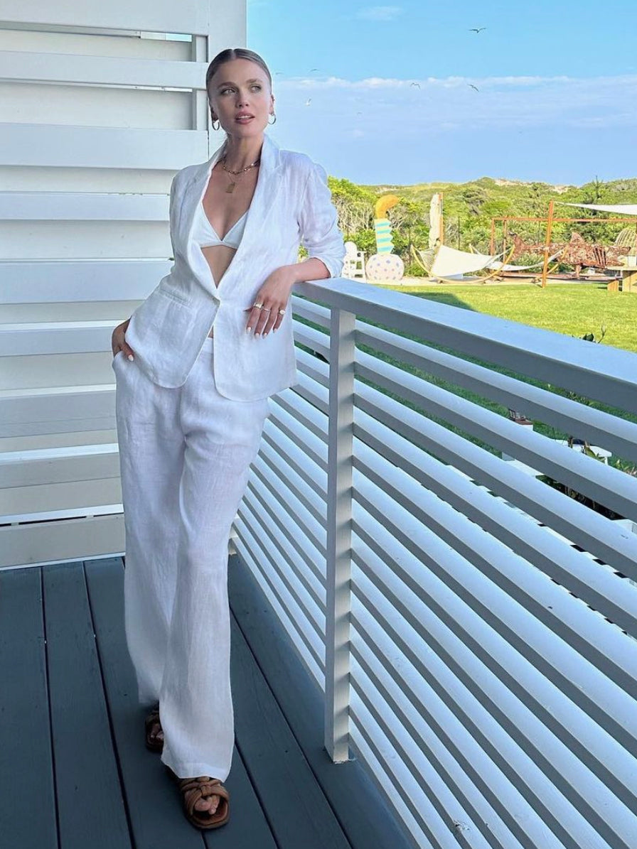 @simphull in the Cara Palazzo Pants and the Linen Boyfriend Shirt
