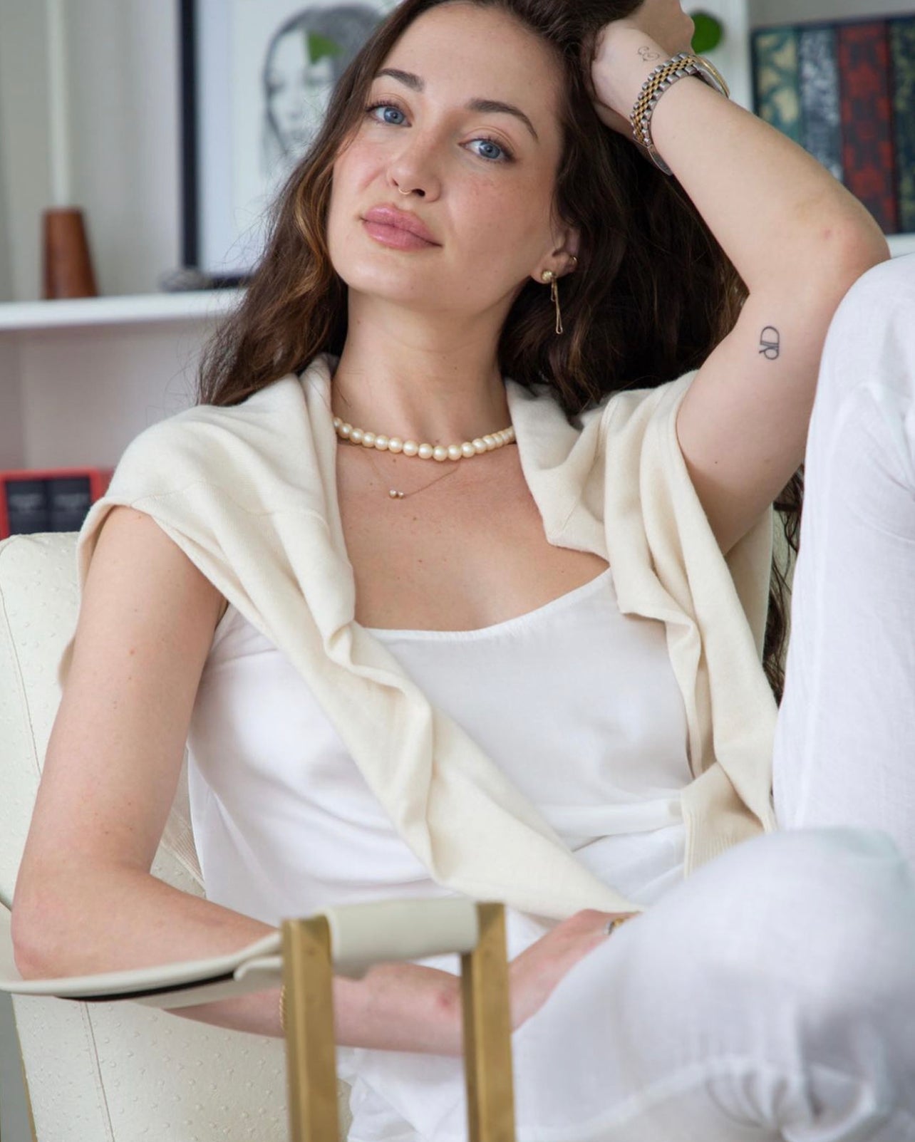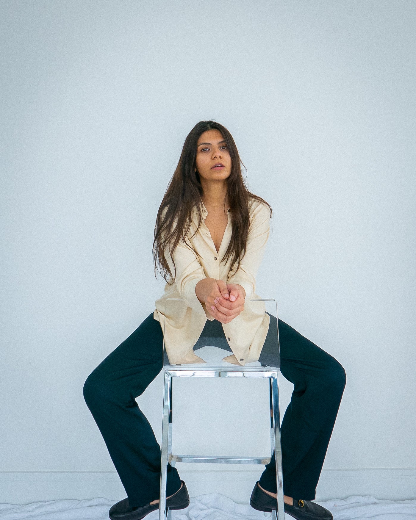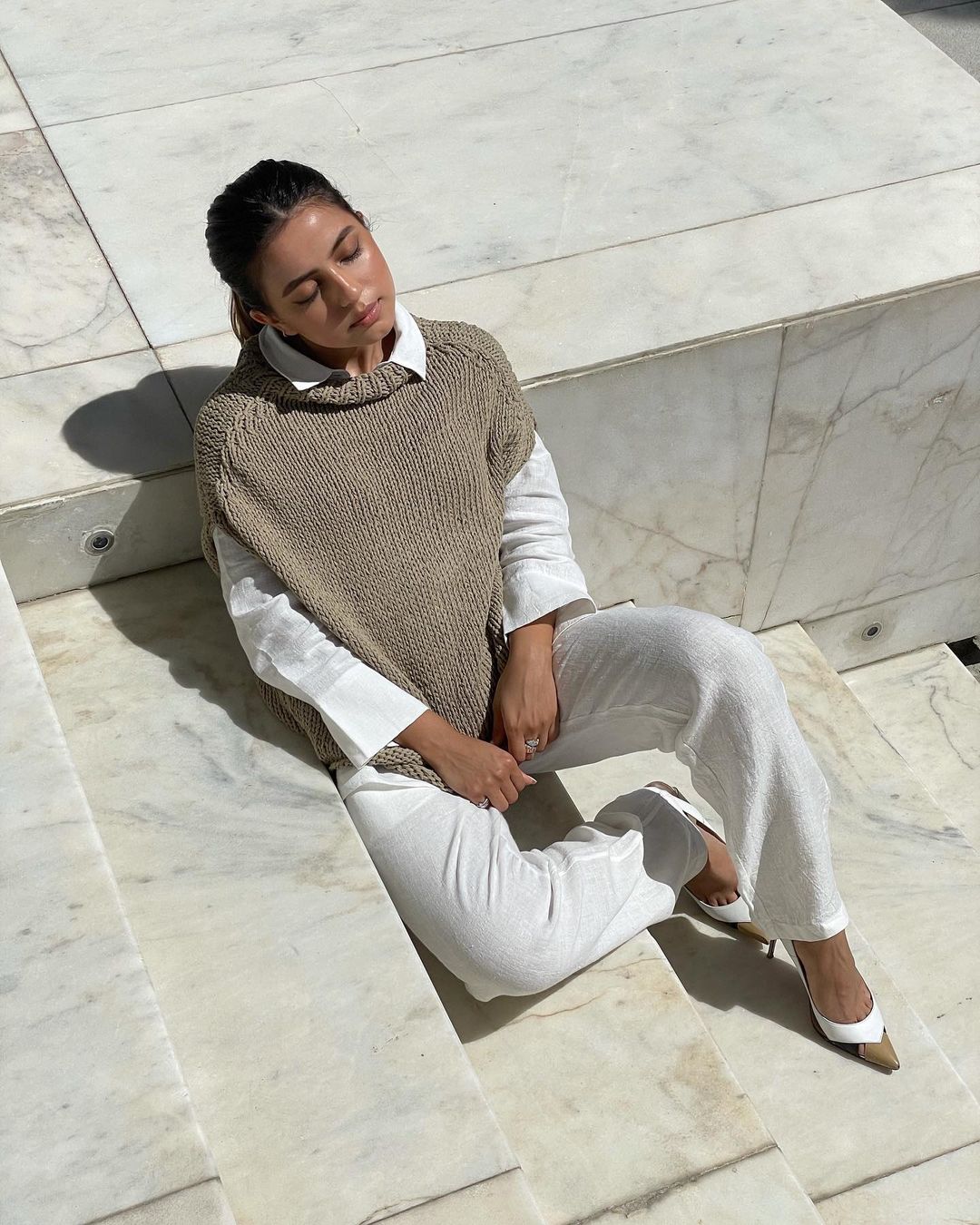 @simphull in the Cara Palazzo Pants and the Linen Boyfriend Shirt