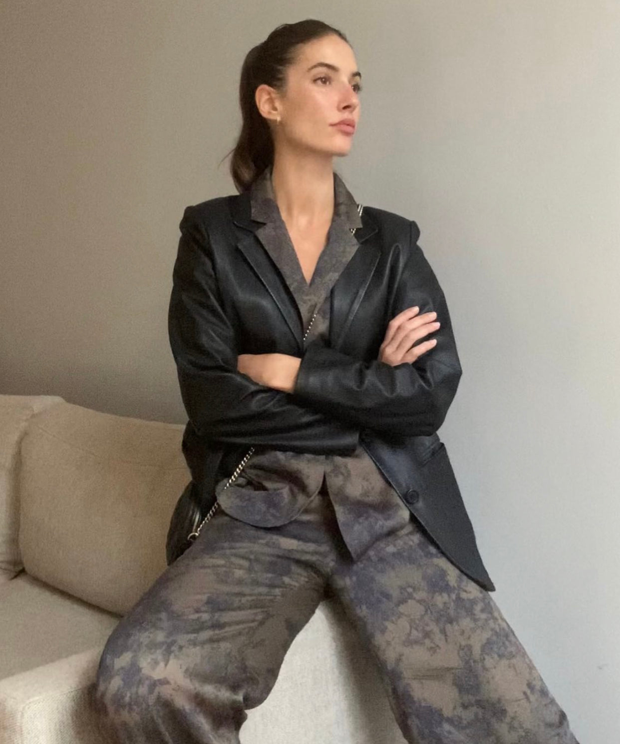 @valencuster in the Karlie Jacket and Carina Marble Print Palazzo Pants