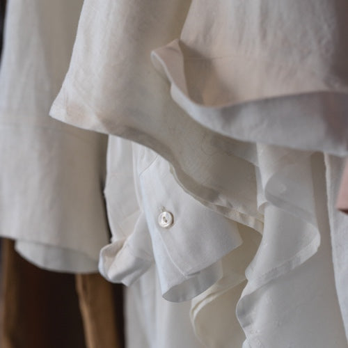 From shipping mailers to garment tags, all of our packaging is zero-waste and 100% recycled. We work with a family-run business that makes its paper entirely from the fabric waste of nearby garment manufacturers, taking the discarded cotton scraps and pulverizing them into a paste that’s dried into sheets and cut into paper. No plastic, no pollution: just the way we like it.